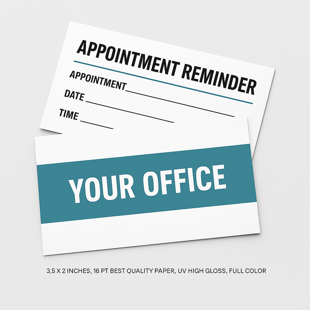 Keep your schedule full and clients on time. These 16pt appointment cards feel substantial in hand and offer an uncoated option that’s easy to write on. We’ll clean up your layout or build a simple design at no charge.